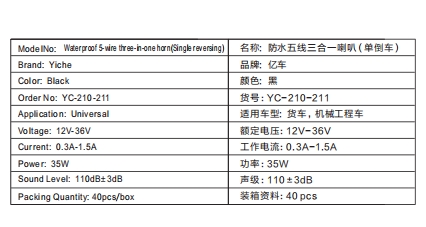 | YC211语音倒车喇叭左右/倒车注意三合一 35W 12V/24V | |||